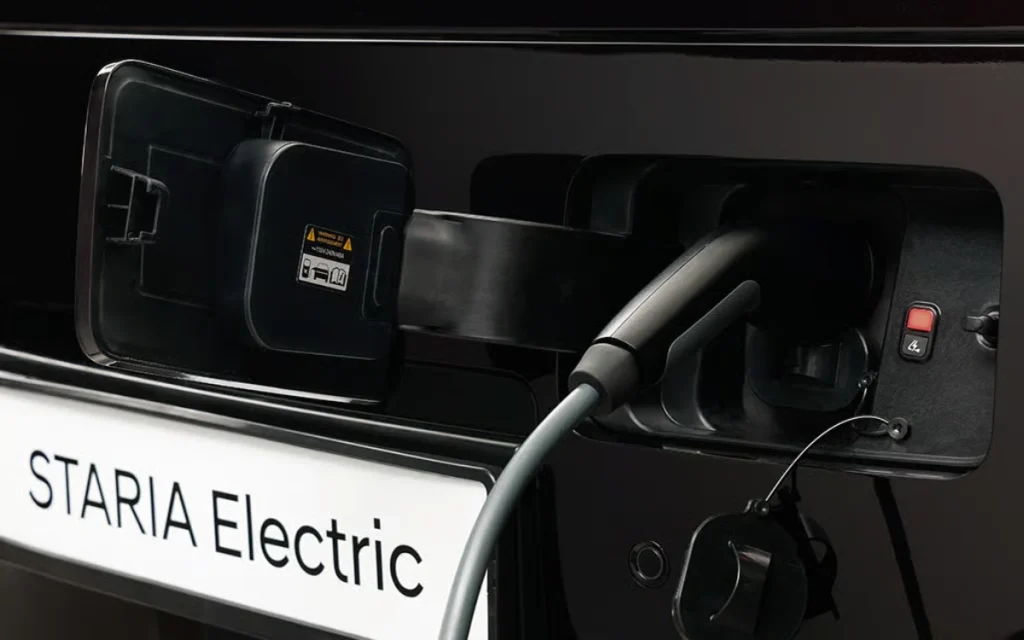 Visually, STARIA Electric stays true to the original’s unmistakable one-curve silhouette while adding EV-specific details.