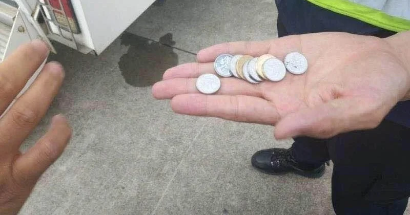 The coins, which totalled $0.25 in value at the time, landed in the intake of the engine with one going into it.