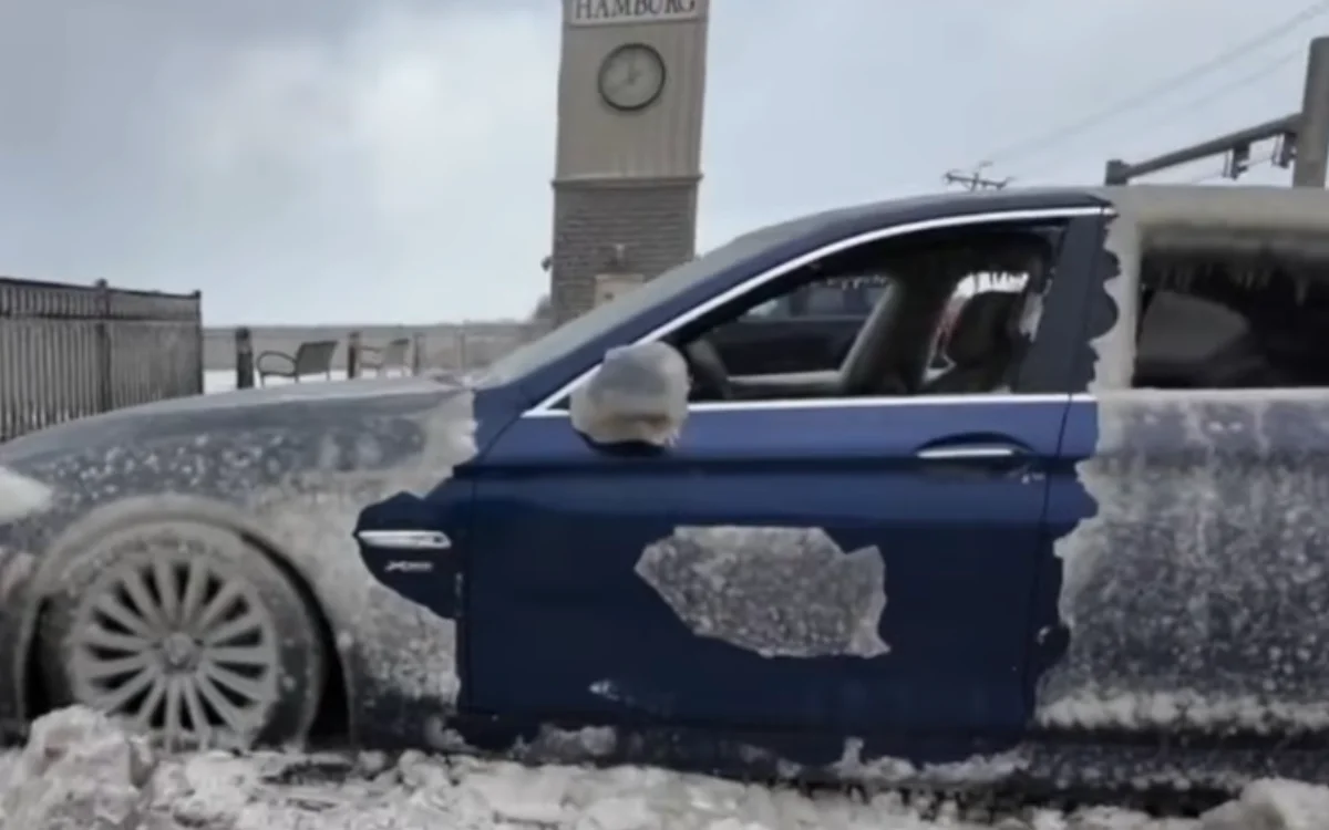 We’re talking about an abandoned BMW being covered in ice, thanks to water from Lake Erie encasing both the shell and interior.
