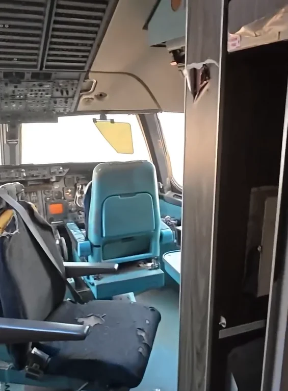 Davud passed through the plane, filming the cockpit and the rest of the plane’s interior.