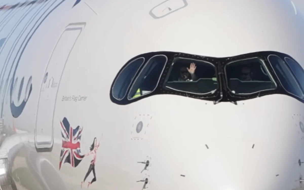 You can’t help but want to wave back when you see the pilot waving from the cockpit of his Airbus A350-100.