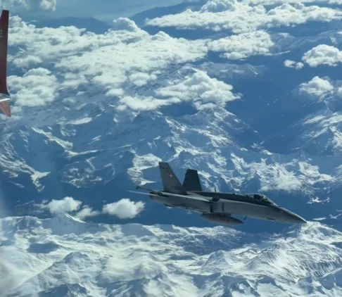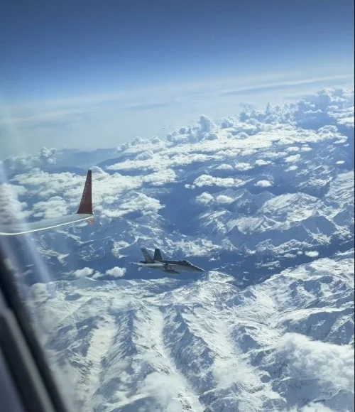 “ATC informed us that our aircraft would be intercepted by two Swiss Air Force F/A-18s as part of a training mission,” she said on Instagram.