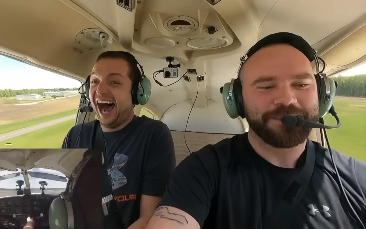 American man spends 6 months secretly getting his pilot’s license then takes control of plane and films his best friend’s reaction