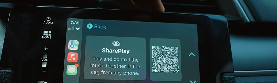 If you’re on Apple Music, tap Now Playing in CarPlay and press the SharePlay icon.