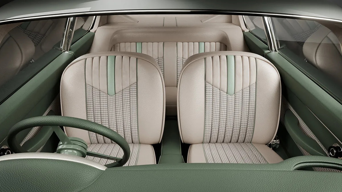 Inside the cabin, the team used sustainable materials including cashmere blends and recycled leather.