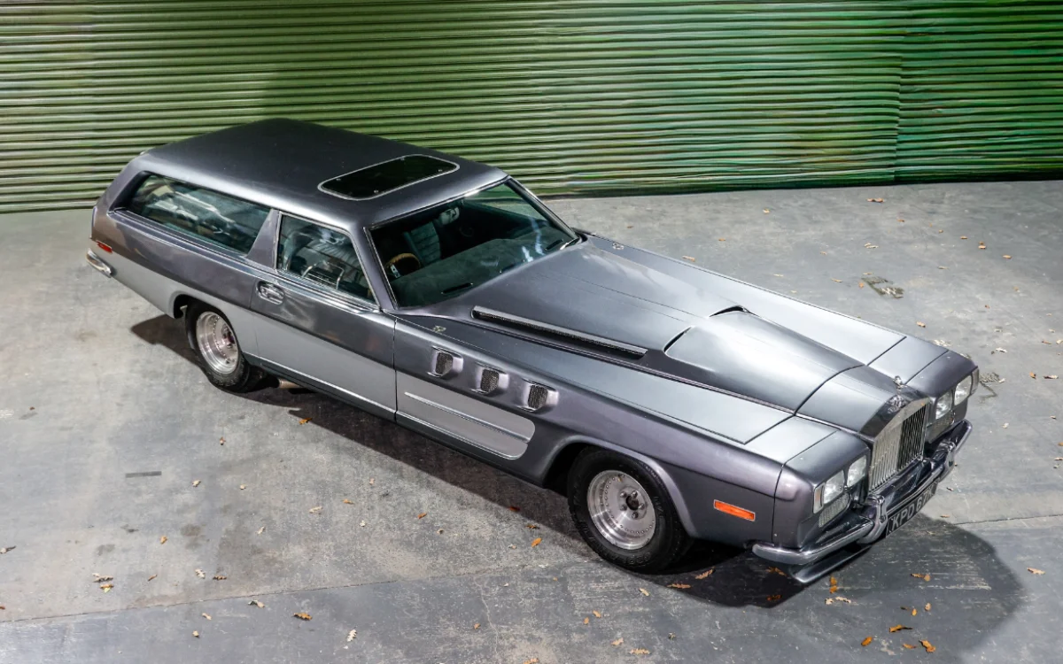 The car initially had a Rolls-Royce grille and Spirit of Ecstacy and was finished in yellow, but it’s since been given a two-tone grey wrap.