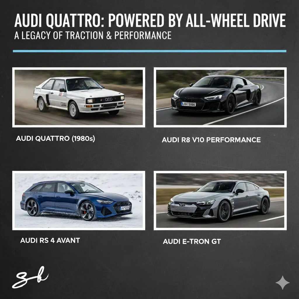The quattro is the all-wheel-drive system found in many Audi models, including the A4 and the Q7.