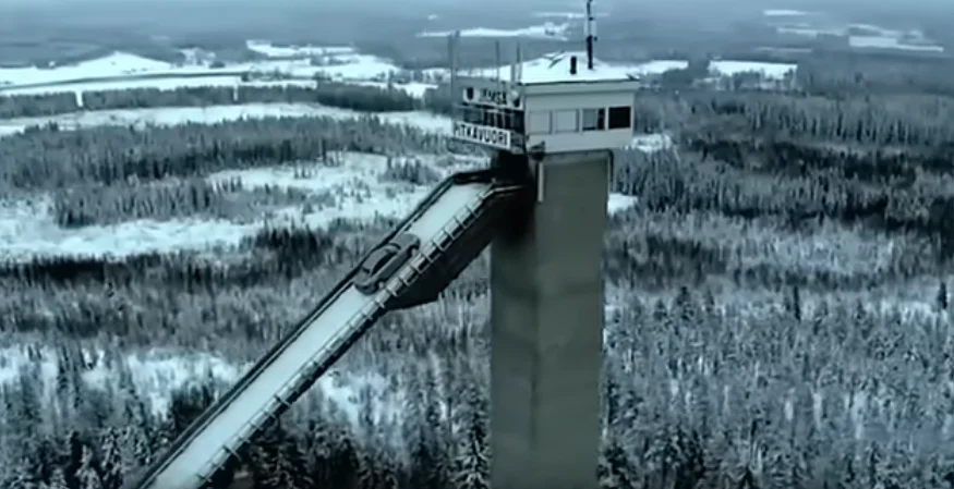 In 1986, rally race car driver Harald Demuth drove an Audi 100 CS quattro to the top of the Pitkavouri ski jump in Kaipola, Finland.