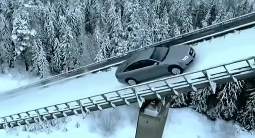 Audi drove a production car up a 37 degree ski jump in Finland to prove its power