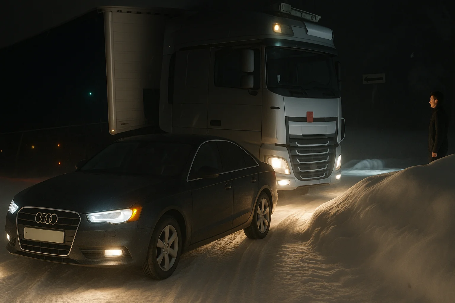 An Audi Quattro isn’t the car you expect to see rescuing a 40,000-pound truck.