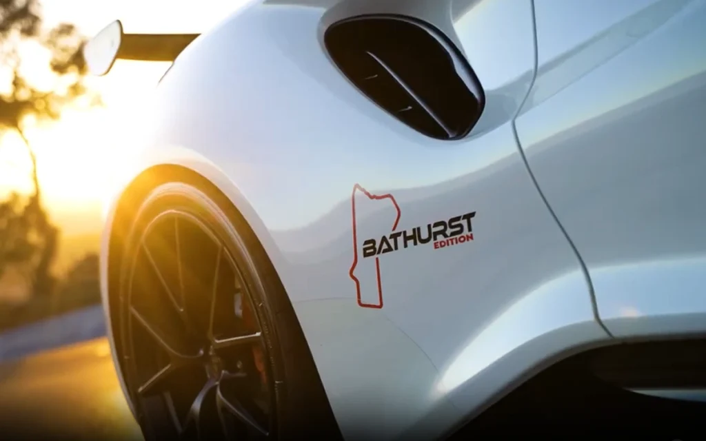 A carbon-fibre front splitter and GT4-style rear wing add visual drama and downforce, while Bathurst Edition decals and livery underline its connection to Mount Panorama.