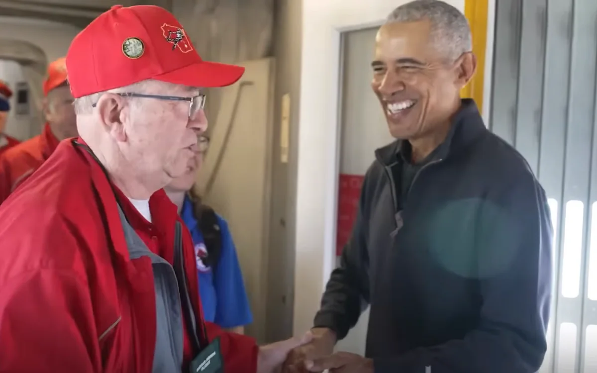 Veterans on a packed flight to Washington DC were stunned when Barack Obama appeared onboard and said something they’ll never forget.