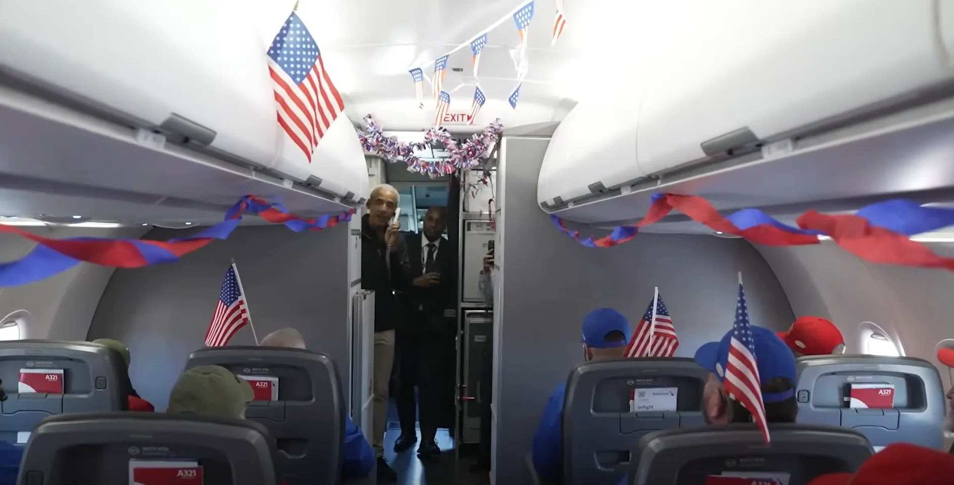 Veterans on a packed flight to Washington DC were stunned when Barack Obama appeared onboard and said something they’ll never forget