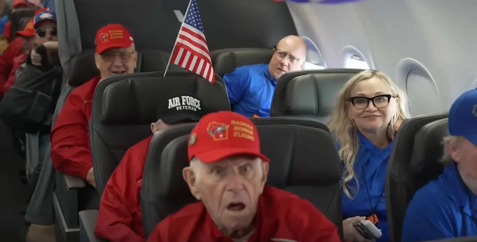 Passengers who were part of a special Honour Flight travelling from Wisconsin to Washington DC, a program that brings veterans of World War II, Korea, and Vietnam to the capital free of charge, were treated to a surprise visitor.