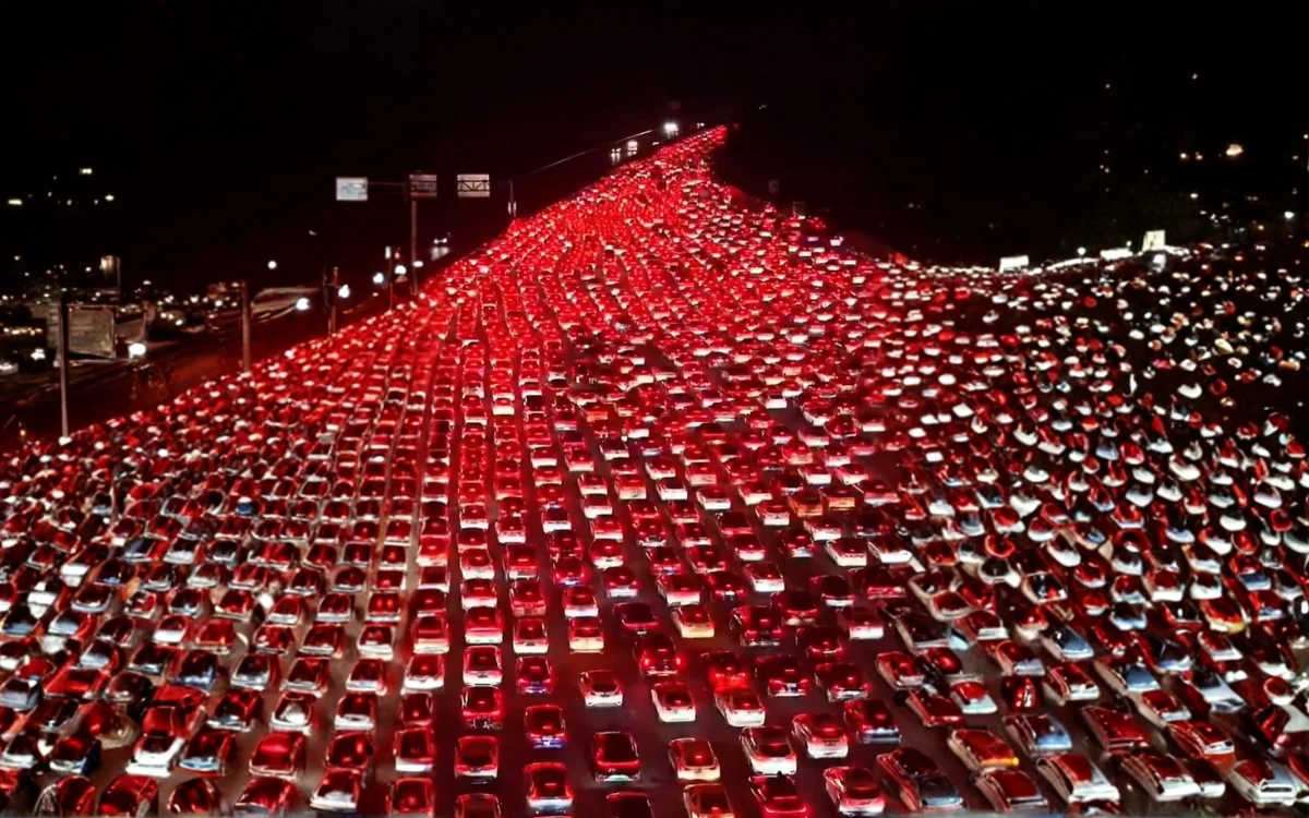 China’s National Day Golden Week celebrations always cause a bit of traffic chaos when people travel to see friends and family to celebrate, but this year, it created an ocean of cars.