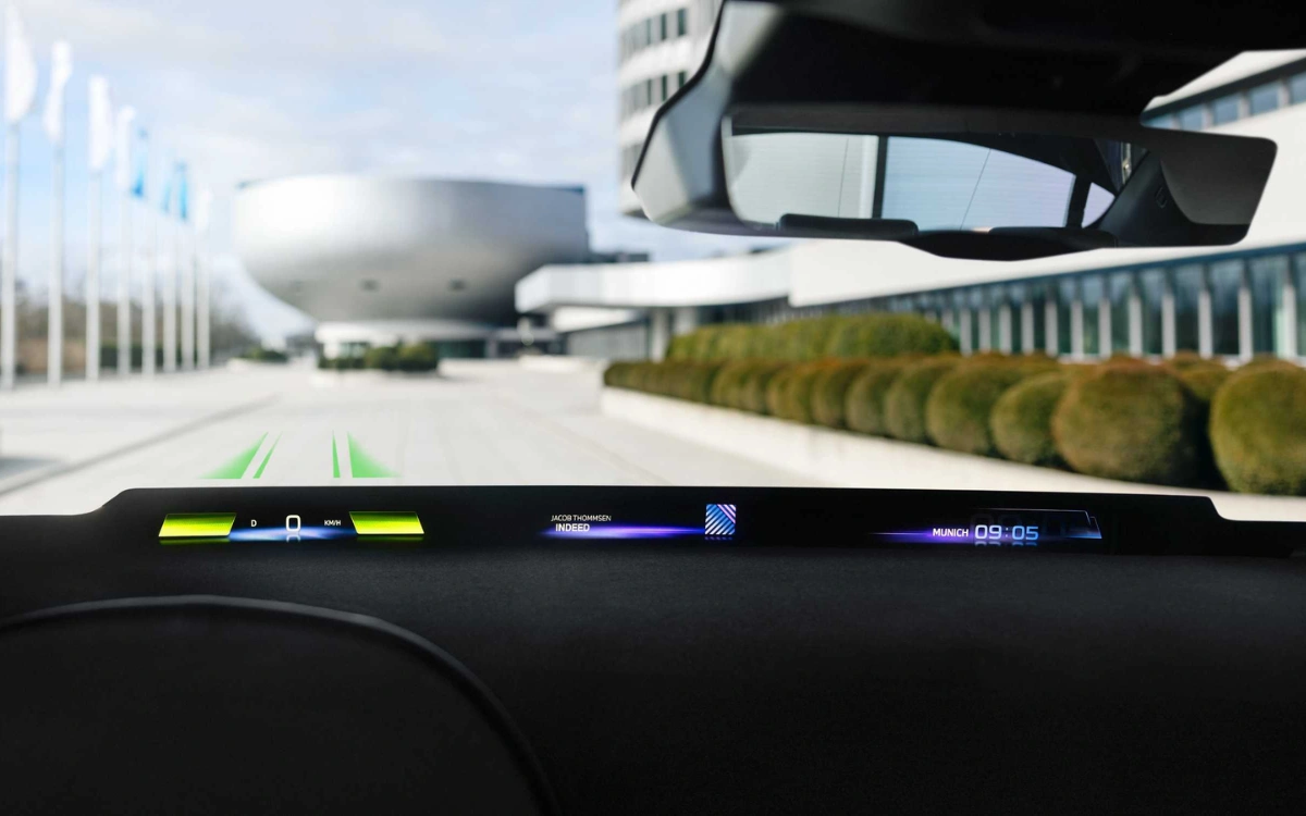 BMW has introduced Panoramic Vision, a wide display that stretches across the base of the windshield, replacing the traditional instrument cluster behind the wheel.