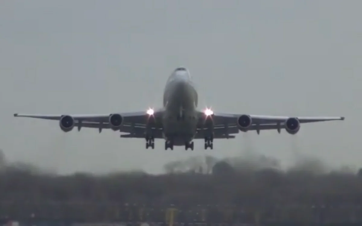 Watch this Boeing 747 battle with powerful crosswinds as it manages a super short takeoff, which sees it soaring into the sky at an extreme angle.