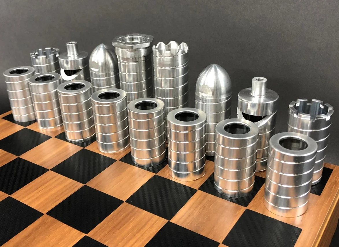 Some of his work is on the smaller side, like a chess set made from KERS (Kinetic Energy Recovery System) parts from F1 cars.