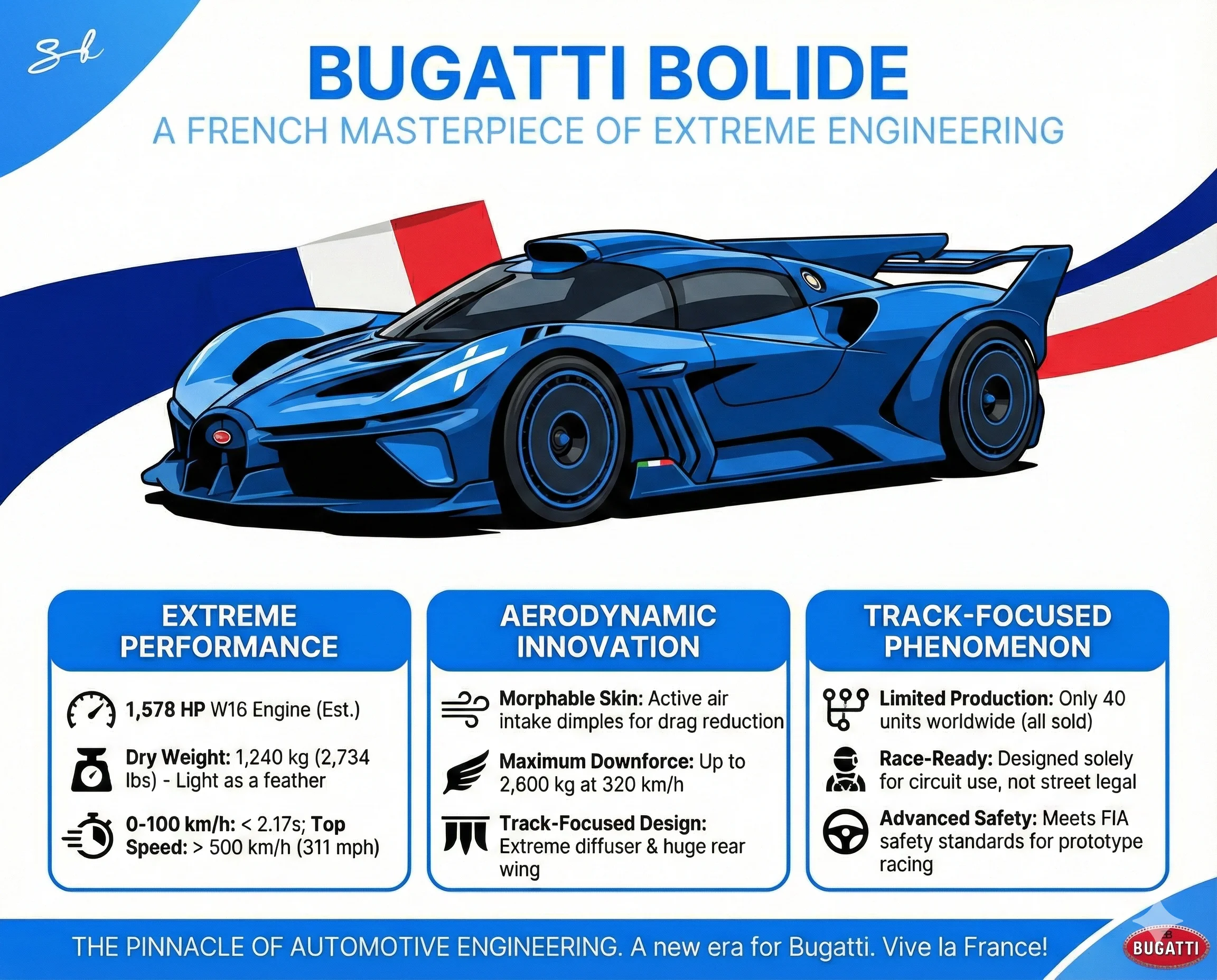 Each of the Bolides has an 8.0-liter quad-turbocharged W16 engine under the hood.