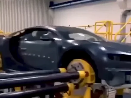 Engineers stand by with eyes on the data, watching as the Bugatti carbon-fiber frame flexes and rebounds under pressure that would fold most vehicles in half.