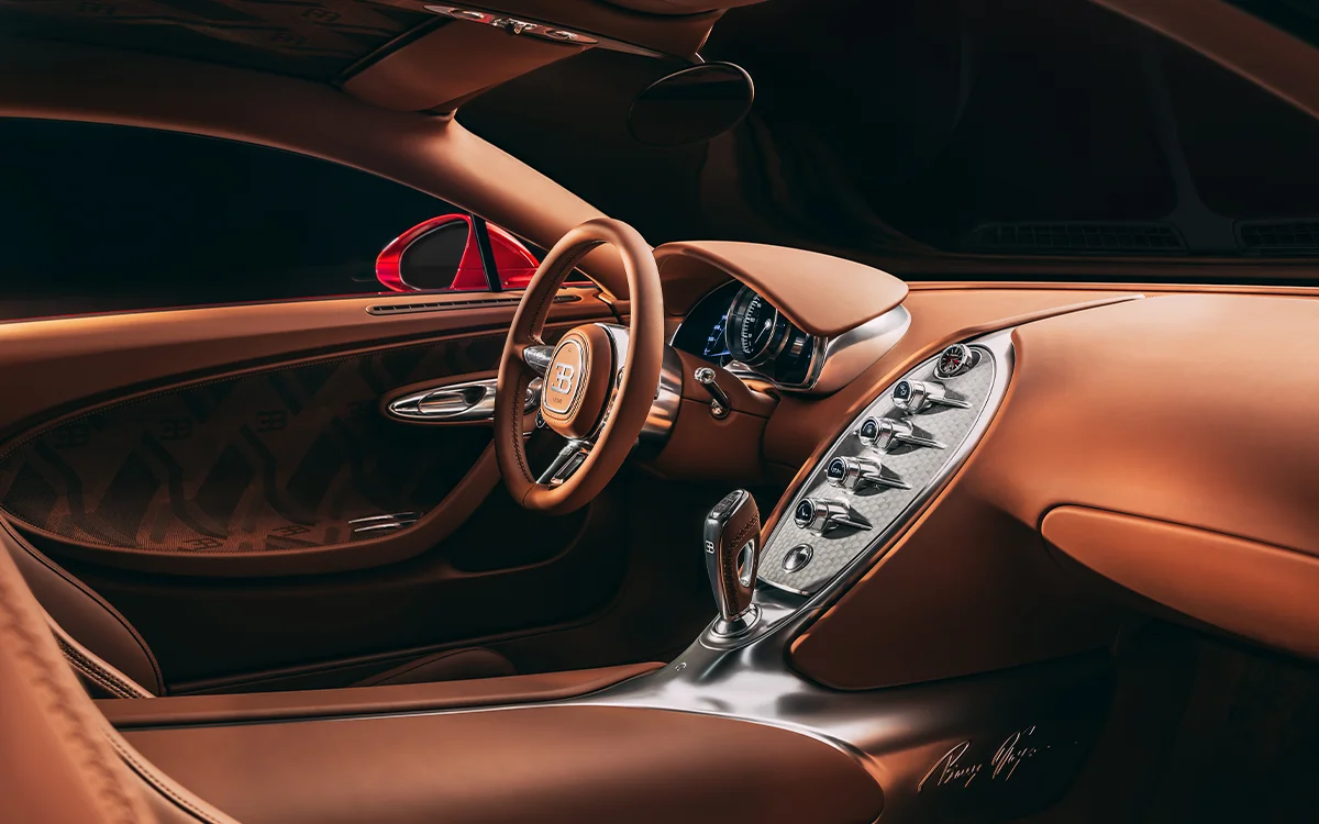 Inside, the manufacturers have gotten experimental, moving away from the usual themes spotted in the Mistral and Chiron, with a circular and Bauhaus steering wheel that no other Bugatti has sported.