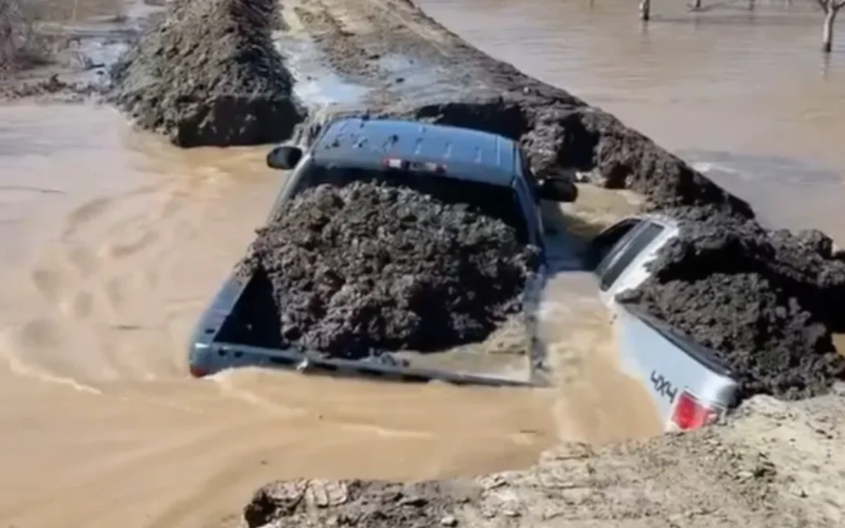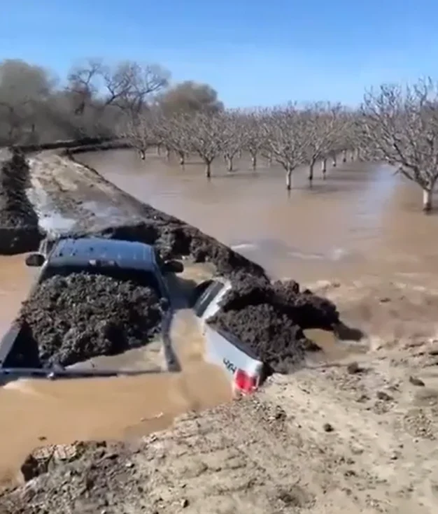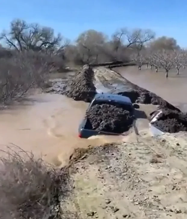 California farmers sacrifice their pickup trucks to stop water from flooding their crops