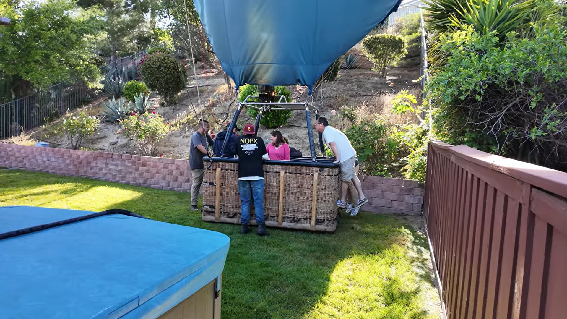 It wasn’t the landing anyone expected, but a California man was left stunned when a hot air balloon carrying 13 strangers touched down right in his backyard.
