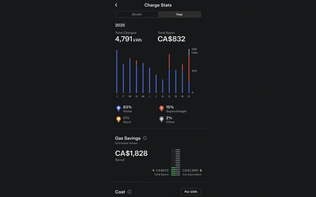 The Tesla owner also revealed that around 85 percent of their charging happened at home, which is one of the biggest factors behind the savings.