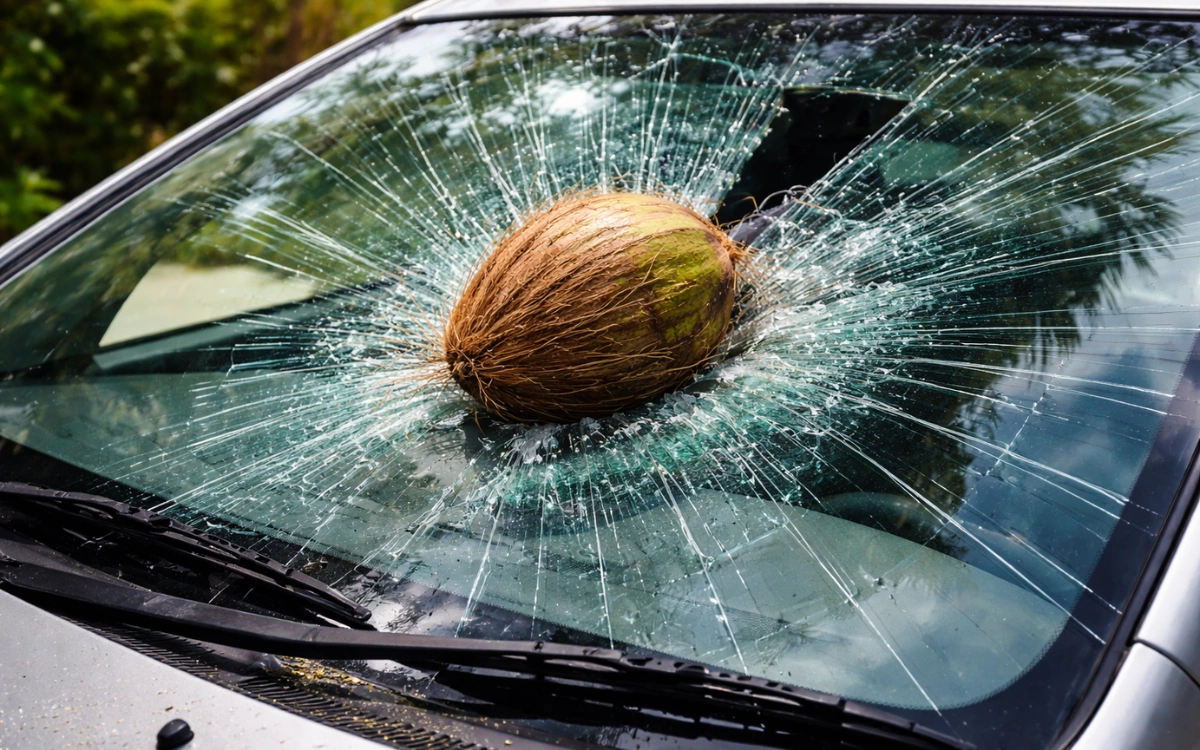 One fine morning, a coconut plunged directly onto the Redditor’s vehicle, shattering the windshield and denting the hood.