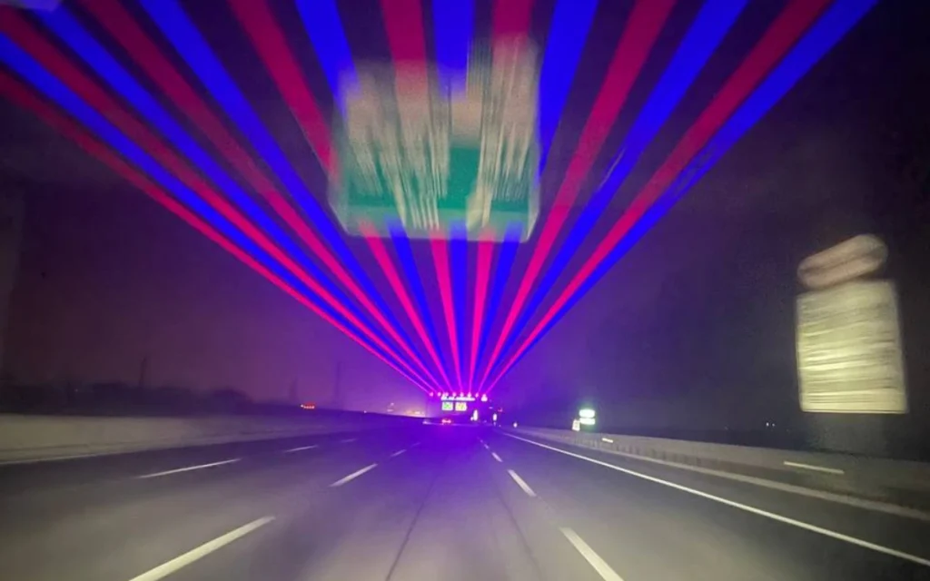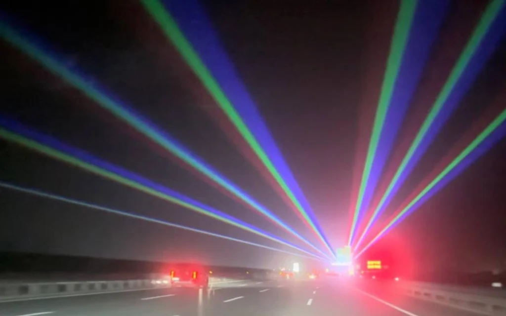 On a stretch of Shandong expressway, a new anti-fatigue measure has turned heads by flooding the night with surreal laser lights that feel more like a nightclub.