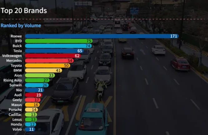 Roewe, a Chinese brand, is well represented among taxis, which goes some way to explaining its dominance in the ranking.