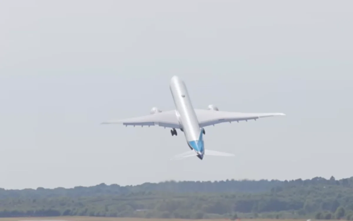 Crowd left speechless as Boeing 777X launches itself into the air vertically in thrilling style
