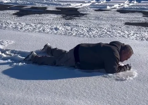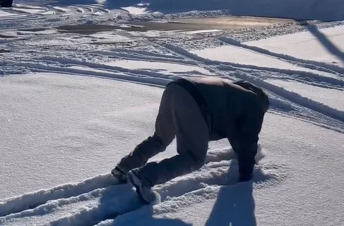 Hilariously, he even demonstrates the difference with his body in the snow.