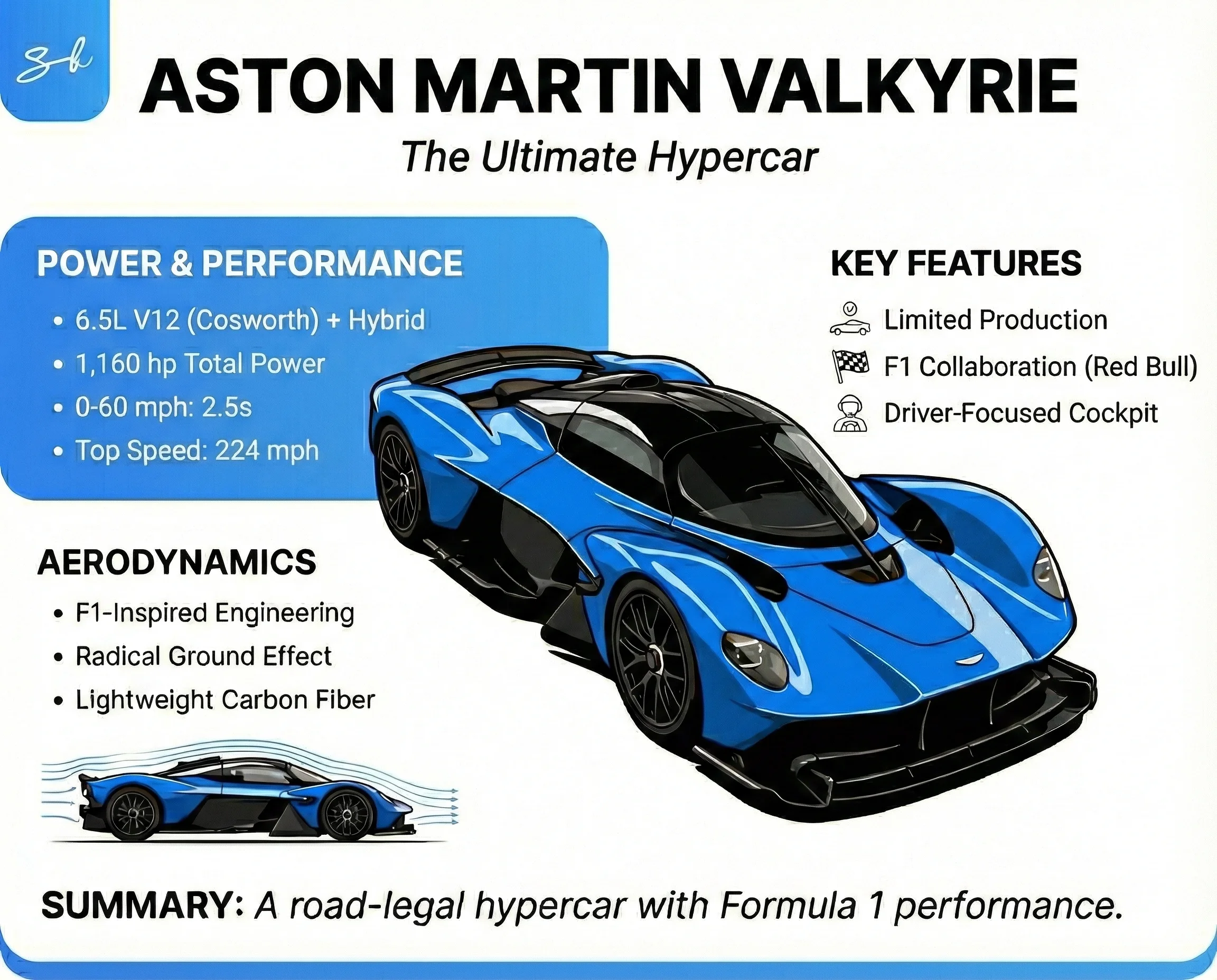 Sitting under the hood is a mighty 6.5-liter Aston Martin-Cosworth V12 engine that is boosted by a 160hp electric motor.