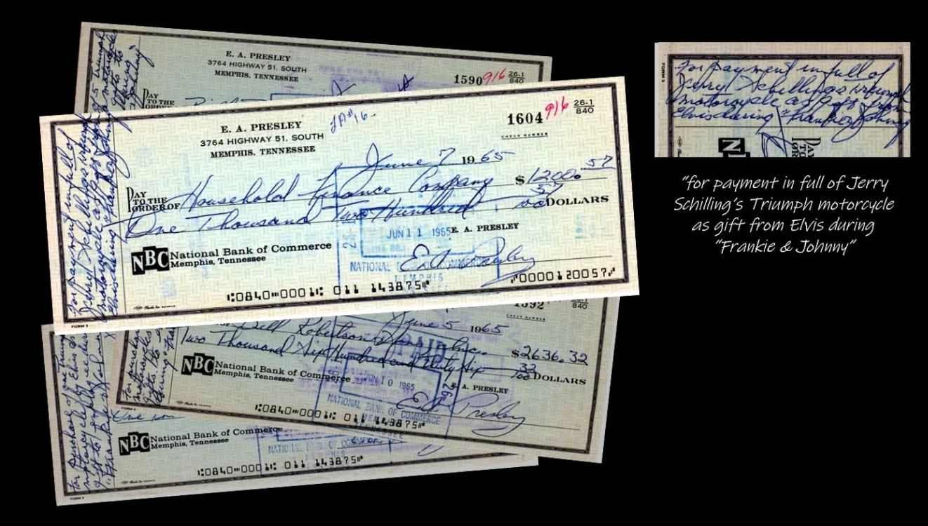 The company does have the checks used to purchase Elvis Presley’s nine motorcycles in 1965.