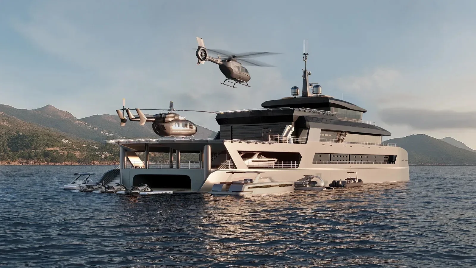 At 233 feet long, this boat is decked out with a ton of cool features, carrying armored SUVs, ATVs, and submersibles onboard.