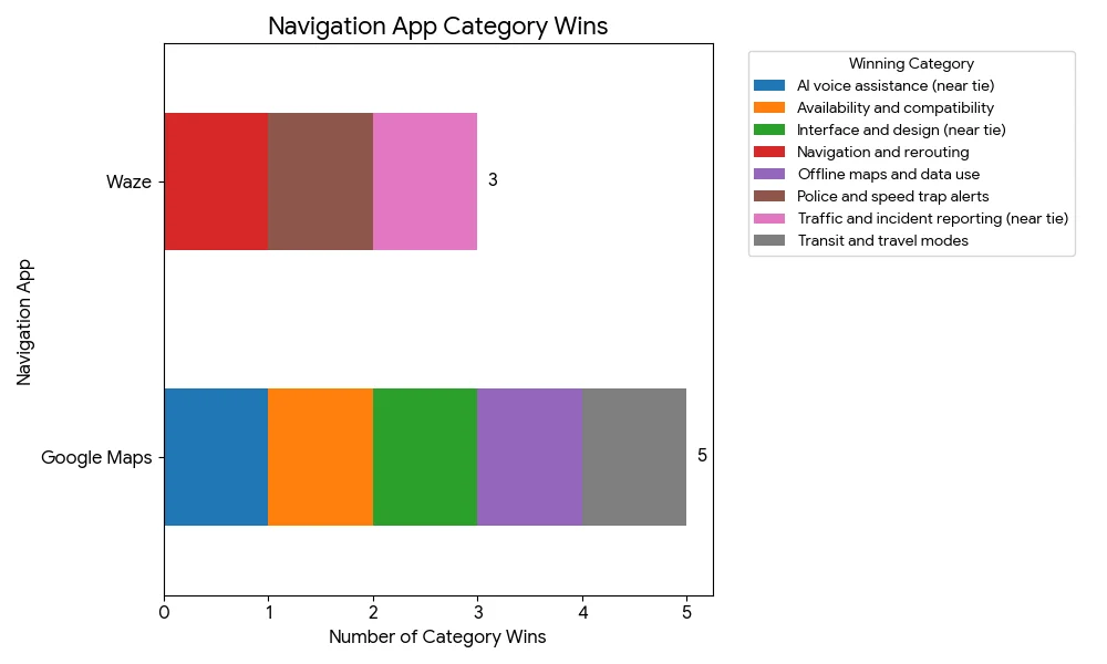 So all in all, it was Google Maps that came out on top with 5 wins compared to 3 for Waze.