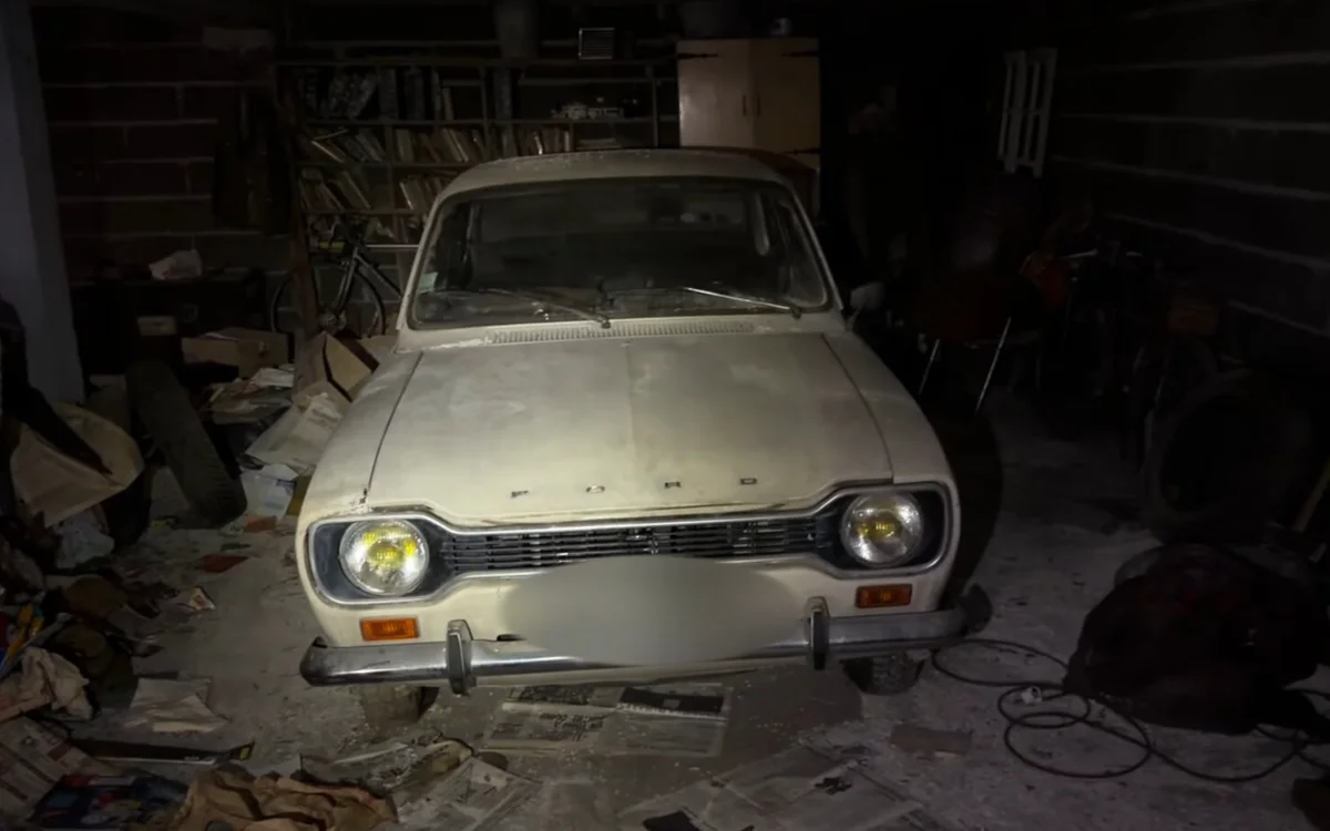 Upon entering the garage, the YouTuber discovered it was a first-generation Ford Escort.