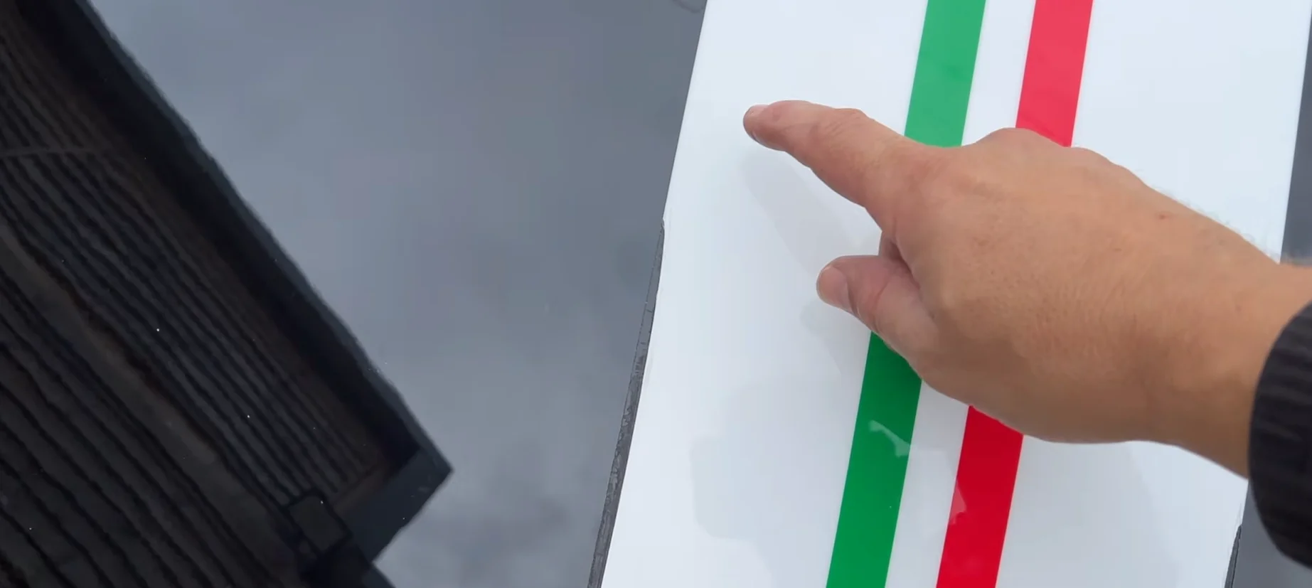 The body shop had initially applied the stripe without slip solution and had to reposition it multiple times, which may have compromised adhesion.