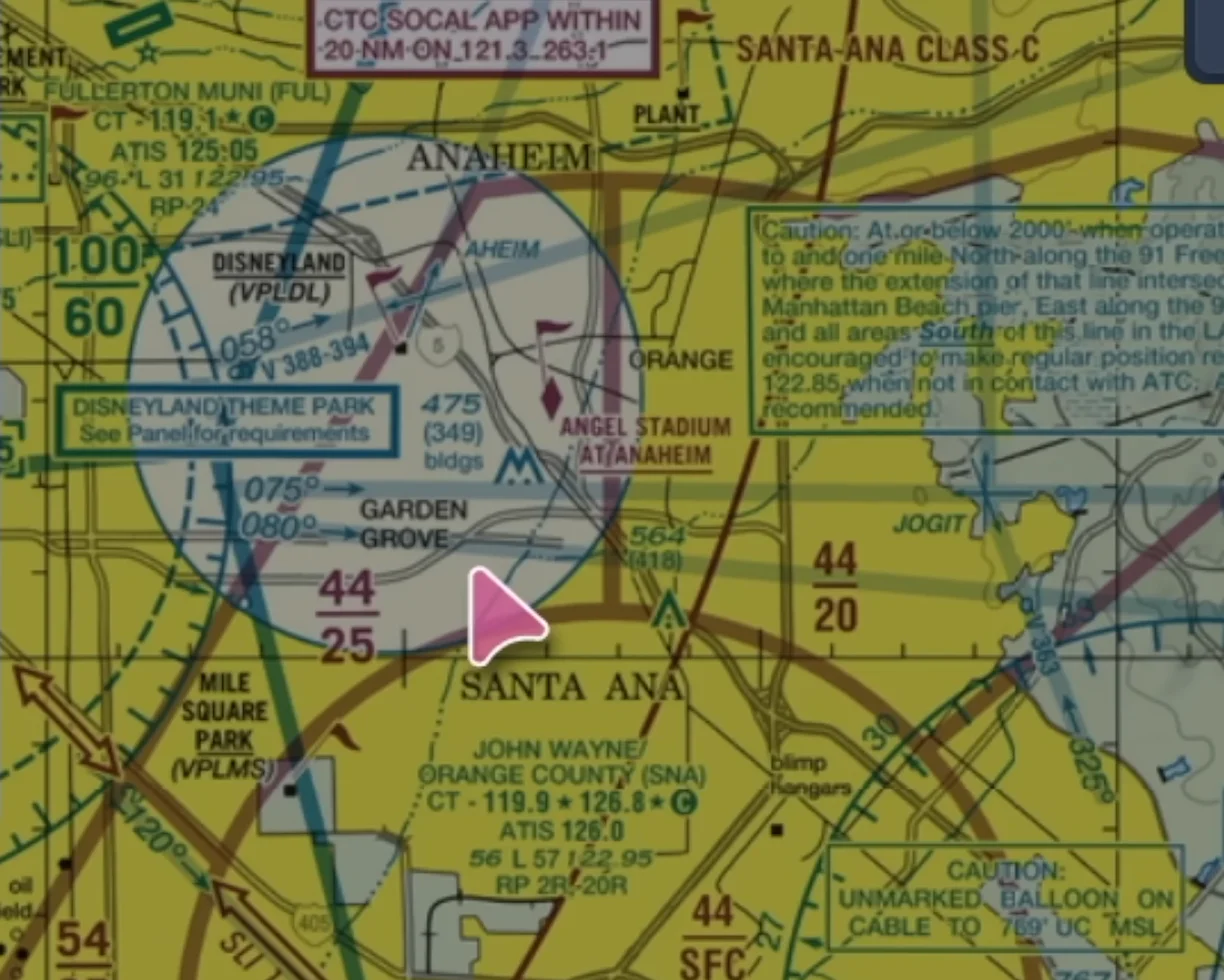 The YouTuber took off from John Wayne Airport in his virtual Cessna airplane, climbed out over the tiny virtual city, and headed straight for the red circle marking Disneyland’s restricted airspace.
