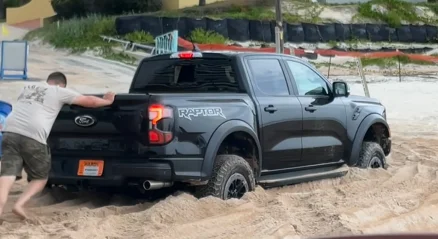 Two vehicles stuck in Florida sand after botched Ford Ranger Raptor rescue attempt and a Toyota saves the day