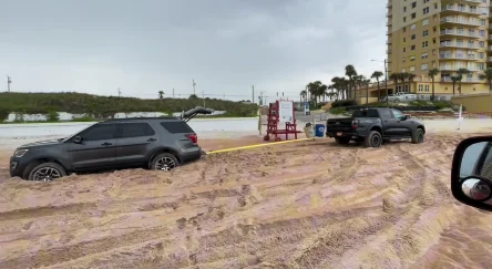This series of events took place in Volusia County, where a Ford Explorer had ventured too far into soft sand and gotten itself stuck.