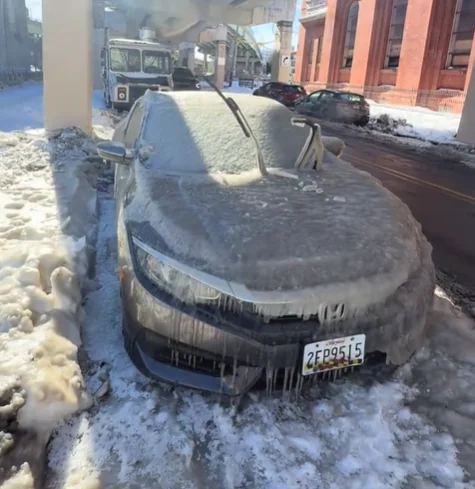 It’s unclear how it happened, but local residents told NBC Philadelphia that a water pipe had burst nearby and as cars drove by, they splashed the water onto the parked cars creating a layer of ice and turning the Civic into a sort of four-wheeled igloo.