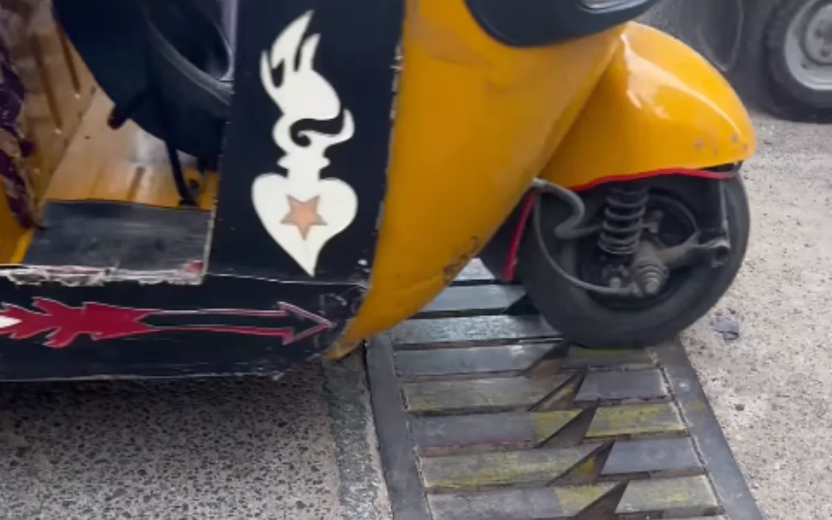 The video shows a bright yellow rickshaw carefully crossing the grate, proving the design works flawlessly for those who respect the rules.