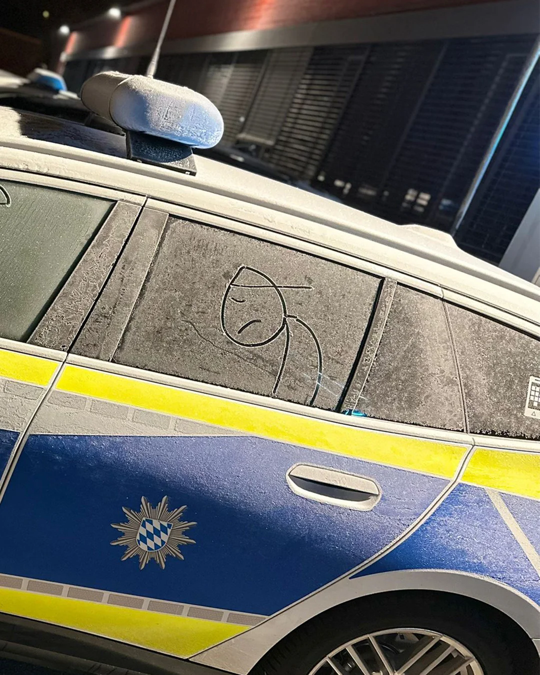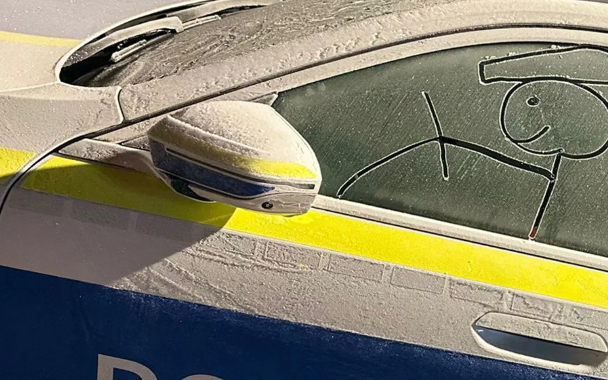 Using the icy windows of a cop car, the officers drew stick-man drivers in the frost, before sharing their reasons online.
