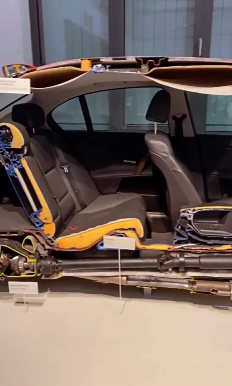 A BMW in Germany has been sliced clean in half to show what’s really going on inside.