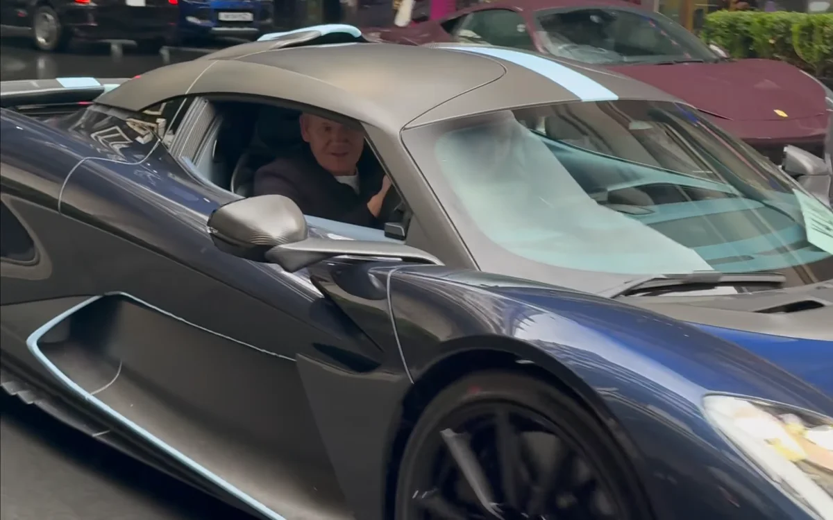 Filmed by YouTuber TFJJ, Ramsay was seen driving the supercar around London with his wife, Tana, and a slightly amusing moment happened after they reached their destination.