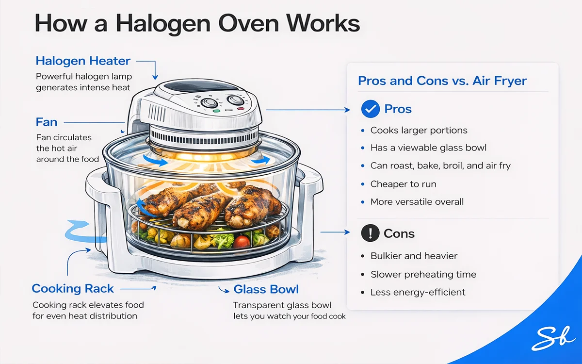 One of those is the halogen oven, which is taking over the healthy household cooking chore from the air fryer.