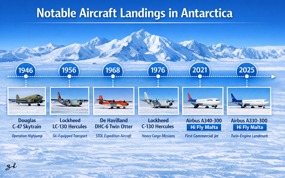 Hi Fly Malta has made aviation history with the first-ever Antarctica landing of an Airbus A330, touching down on the icy Wolf’s Fang airfield.