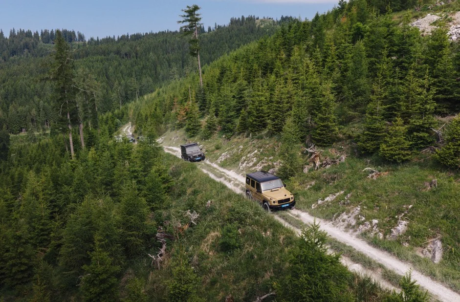 The shift to electric power changes how the G-Class approaches steep mountain slopes, as electric motors provide instant torque for climbing over large obstacles.